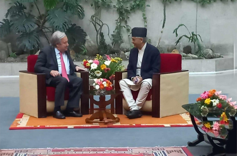 कात्तिक १३, २०८० काठमाडौं । संयुक्त राष्ट्र संघका महासचिव एन्टोनियो गुटरेसले संघीय संसदको दुवै सदनको संयुक्त बैठकलाई भोलि कात्तिक १४ गते मंगलबार ४ः०० बजे सम्बोधन गर्ने भएका छन्। महासचिव गुटरेस नेपालको संसदलाई सम्बोधन गर्ने पहिलो राष्ट्रसंघीय प्रतिनिधि हुनेछन् । यसअघि नेपाल भ्रमणमा आएका राष्ट्रसंघका तत्कालिन महासचिव वान्की मूनले संसदको ल्होत्से हलमा सांसदहरुको भेलालाई सम्बोधन गरेका थिए।