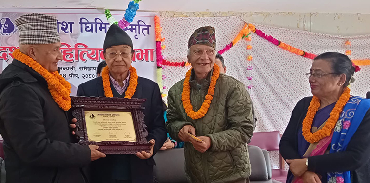 पुस १५, २०८० काठमाडौं । यस वर्षको जगदीश घिमिरे स्मृति पुरस्कार साहित्यकार माधव काफ्लेलाई प्रदान गरिएको छ । शनिबार रामेछापको मन्थलीमा भएको जगदीश घिमिरे स्मृति १० औँ साहित्यिक सभामा काफ्लेलाई सो पुरस्कार प्रदान गरिएको हो । जगदीश घिमिरे स्मृति प्रतिष्ठानले वितरण गर्दै आएको सो पुरस्कार कार्यक्रमका प्रमुख अतिथि प्राज्ञ तुलसी दिवसले प्रदान गरे । पुरस्कारको राशी ५१ हजार रुपैयाँ रहेको छ ।
