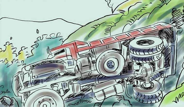 दाङमा यात्रुबहाक बस दुर्घटना हुँदा १४ यात्रु घाइते