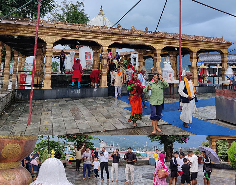 पोखराको प्रसिद्ध धार्मिकस्थल बिन्ध्यवासिनी  मन्दिरमा दर्शन गर्नका लागि आएका भक्तजनहरु। तस्बिर: राधिका कँडेल/रासस