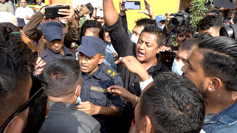 सोमबार कान्तीपथस्थित होटल एलो प्यागोडामा पत्रकार सम्मेलनको क्रममा उनीमाथि केही युवाहरुले कालो मोसो दलेका हुन् ।