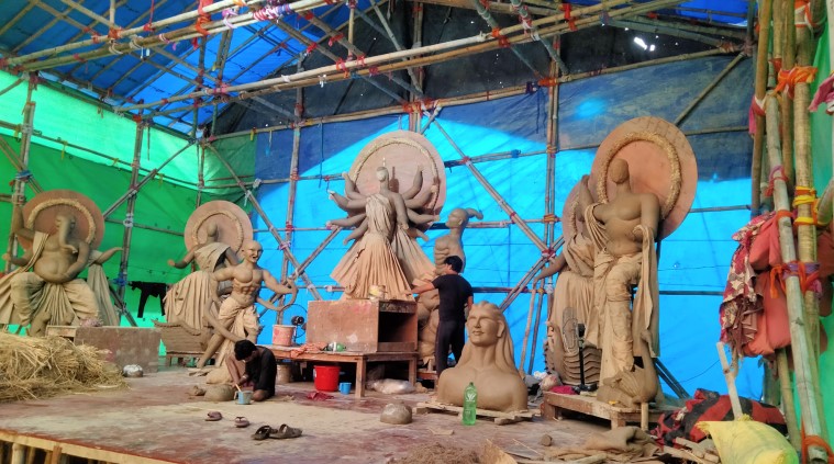 दसैँ नजिकिँदै गर्दा महोत्तरी जिल्लाको सदरमुकाम जलेश्वर नगरपालिका–२ महेन्द्रचोकमा दुर्गा माताको प्रतिमा बनाउँदै कालिगढ । तस्बिर : सञ्जीतकुमार मण्डल/रासस