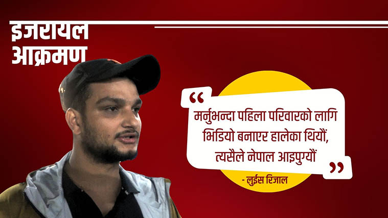 द्वन्द्वबाट बच्न बंकर लगायतका स्थानमा बसेका एक विद्यार्थीको समुहले उनिहरुको तत्काल उद्दार नहुने स्थिति देखेपछि इजरायल द्वन्द्वमा परी मर्नुभन्दा पहिला परिवारलाई सूचना दिने भनेर सामाजिक सञ्जालबाट आफूले भिडियो बनाएर फेसबुकमार्फत पोस्ट गरेको विद्यार्थी लुईस रिजालले बताएका छन् ।