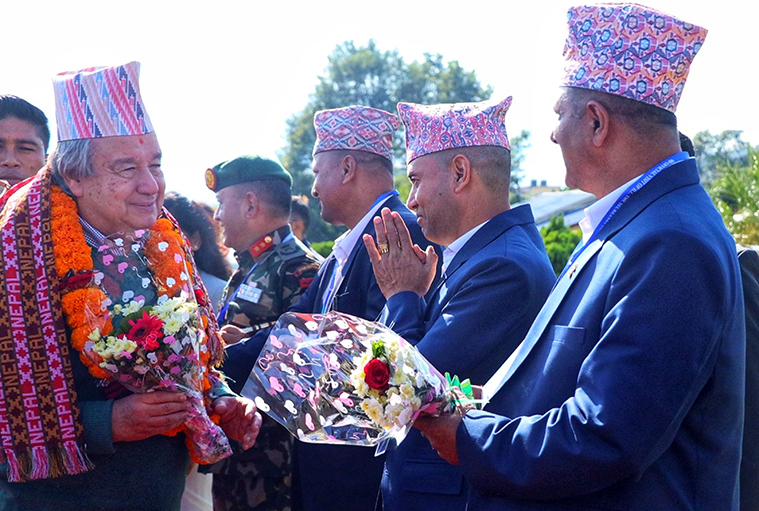 मुख्यमन्त्री पाण्डेले सयपत्री फूलको माला र पोखरा महानगरका प्रमुख धनराज आचार्यले ढाकाटोपी पहिराएर महासचिव गुटेरेसलाई स्वागत गर्नुभएको थियो । उहाँको स्वागतमा प्रदेश सरकारका मन्त्री, जनप्रतिनिधि, सुरक्षा निकायका प्रमुखलगायत उच्चपदस्थ व्यक्तिहरू विमानस्थल पुगेका थिए ।