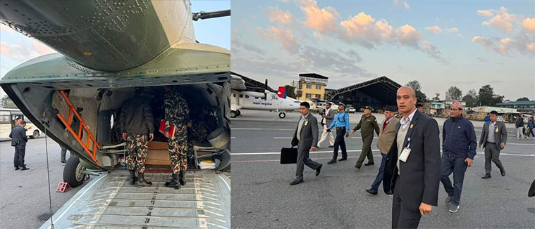 स्वास्थ्यकर्मी र अत्यावश्यक सामग्री लिएर प्रधानमन्त्री भूकम्प प्रभावित क्षेत्र जाजरकोटमा