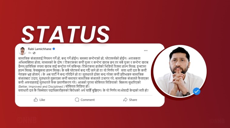 राष्ट्रिय स्वतन्त्र पार्टीका सभापति रवि लामिछानेले सामाजिक सञ्जाललाई बन्द गर्ने नभई नियमन गर्नुपर्ने बताएका छन् ।