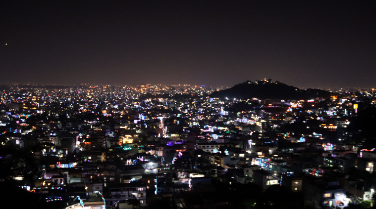 तिहारको तेस्रो दिन सोमबार काठमाडौँँको हलचोकबाट देखिएको स्वयम्भूनाथ लगायत बत्तिको झिलिमिलि दृश्य । तस्बिर : हरिराम भेटुवाल/रासस