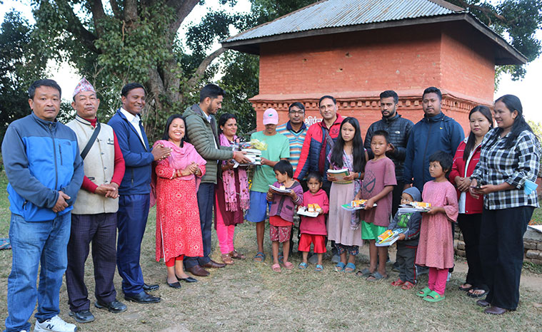 धनकुटाका पत्रकारहरूले देउसी खेलेर संकलन गरेको रकमले अनाथ बालबालिकाहरूलाई शैक्षिक सामग्री प्रदान गरेका छन् ।